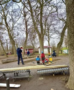 Trädgårdsdagar och storstädning är trevliga gemensamma dagar där vi föräldrar får möjlighet att lära känna varandra samtidigt som vi gör barnens vardagsmiljö fin och säker tillsammans. Vi grillar ofta korv, fikar och skapar en gemenskap som är unik tack vare föräldrars engagemang och den unika miljö förskolan erbjuder.